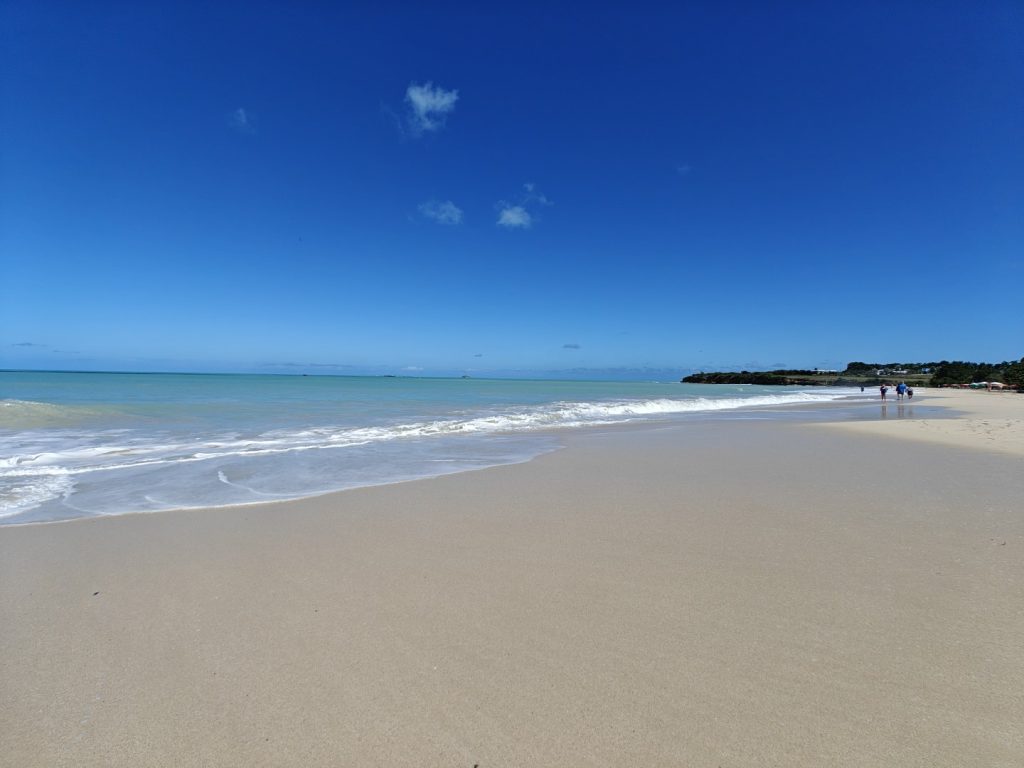 Men det var Antigua jag skulle skriva om. Det här var helt klart den varmaste och soligaste dagen på vår resa hittills. Mot stranden alltså. Vi hade kollat på kartan att det skulle vara kanske fyra kilometer från hamnen. Först tänkte vi gå, men efter att ha läst recensioner på nätet om hur länge det tagit för dem, plus att vi visste att vi garanterat skulle tappa bort oss och det skulle ta ännu längre, beslöt vi oss för att ta taxi. En shared taxi med ett amerikansk pensionärspar som skulle till samma ställe. Snabbt och smidigt och ett bra beslut. Vi kom överens om en tid när taxin skulle hämta oss igen, och hade nu fyra timmar att slappa på stranden.